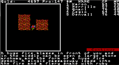 The fights in this area was much tougher. There is much variation in the quantity of foes in the random encountes. Meeting a group of 14th level wizards and 14th level fighters are not that fun because you never know what nasty spells they could use against you. You have to fight every 20-30 step or so and must preserve the strength for the really important fights. You must also be strong enough to get back to your ship and survive the long voyage to a friendly harbour. So my tactic was mostly to flee from the fights to preserve my strength. Only when the enemies was to near or relatively weak, would I fight them.