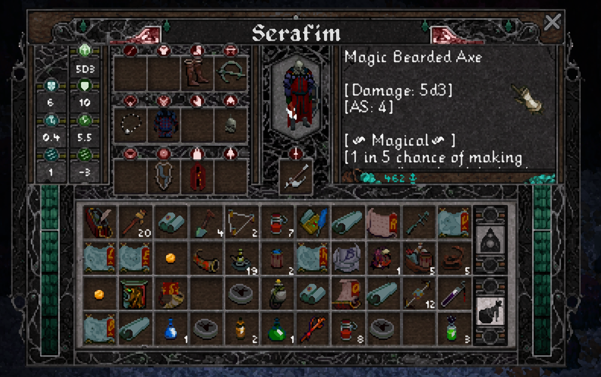 | My supreme Bearded Axe. 20 % chance of making an enemy flee! |