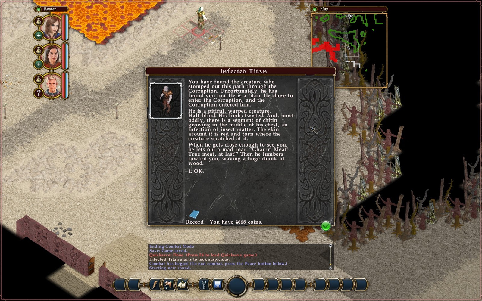 We will see if I have the patience to get through to the end with this game. The fights have generally become harder and harder the further I get. When I first met Miranda in a fight and was held hostage at a demons mercy I thought I had got stuck. I had to change difficulty one step below normal to be able to survive that fight. I had to do that at the ogre boss fight as well. I feel I lack the offensive spells I would like and while my fighters are good there are no better weapons to buy for them despite me having enough gold.